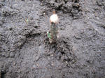アボカドは葉が落ちちゃったけどちょっと芽が見えたので庭に植え替えてみた